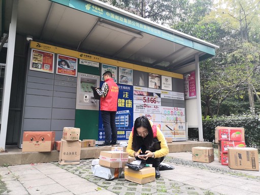 “双11”期间,四川省自贡市邮政分公司为了解决“最后一公里”人员不足的问题,组织志愿服务队去一线帮忙投递。□徐鹏 摄影报道