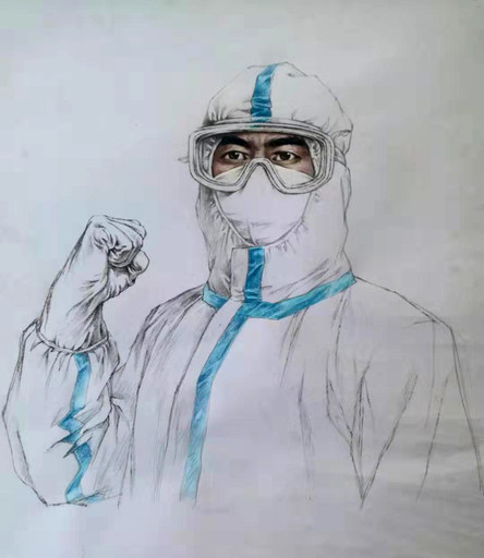 《众志成城 抗击疫情》邮票中医护工作者草图。