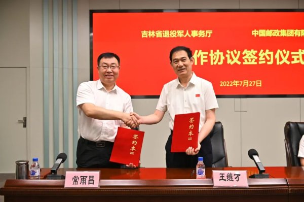 7月27日下午,中国邮政集团有限公司吉林省分公司与吉林省退役军人事务厅举行合作协议签约仪式,省退役军人事务厅厅长万春江,省分公司党委书记、总经理赵勇出席签约仪式并致辞;省分公司副总经理张维春主持签约仪式;省退役军人事务厅副厅长王继才与省分公司副总经理常雨昌代表双方共同签署合作协议;双方省、市、县各级主要领导及相关部门负责人以电视电话会议形式在各自分会场参加签约仪式。