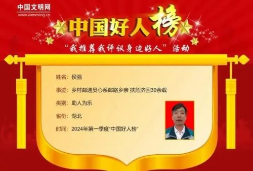 其中,郧阳区邮政局南化塘支局投递员侯强当选“助人为乐”类中国好人,一起来了解他的先进事迹。