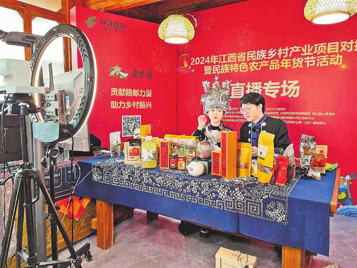 邮政农品直播走进江西特色农产品年货节。□周芳 摄