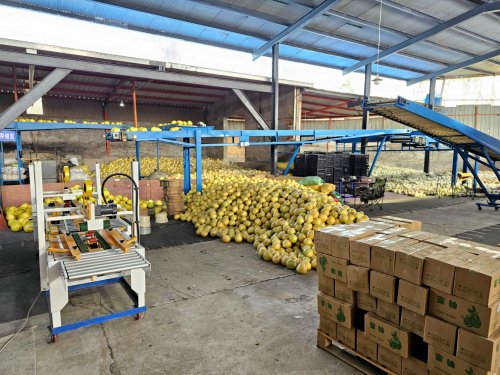 在湖北柚之健生态农业发展有限公司的蜜柚筛选分装车间,大批量打包好的蜜柚等待邮政物流车辆前来收取。公司负责人方昌祖提及与邮政的合作深有感触,多年来,当地邮政为企业提供了物流、资金、销售平台等全方位的支持,为企业发展“雪中送炭”“添柴加火”。