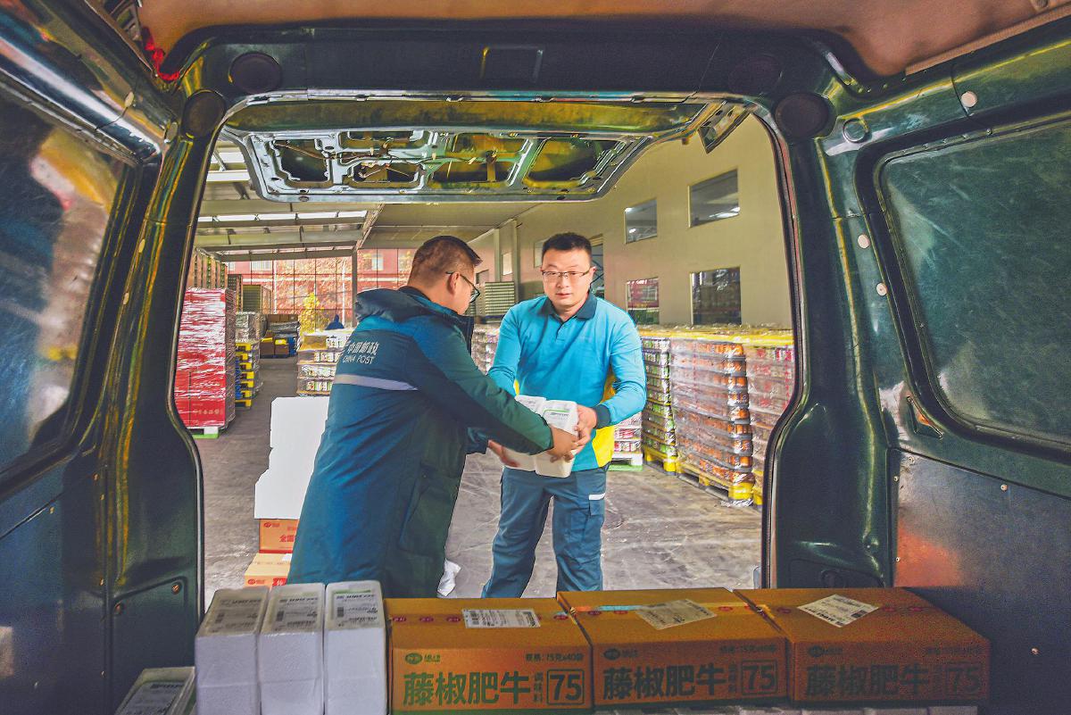 跨年度旺季营销启动以来,河南省南阳市邮政分公司围绕营销与宣传下功夫,以靠前服务为切入,组织人员深入电商企业,为客户提供从订单、配货、打包到发货“一揽子”服务,抢抓旺季商机。图为12月9日该分公司揽投员上门收寄客户新推出的“零添加”食品。