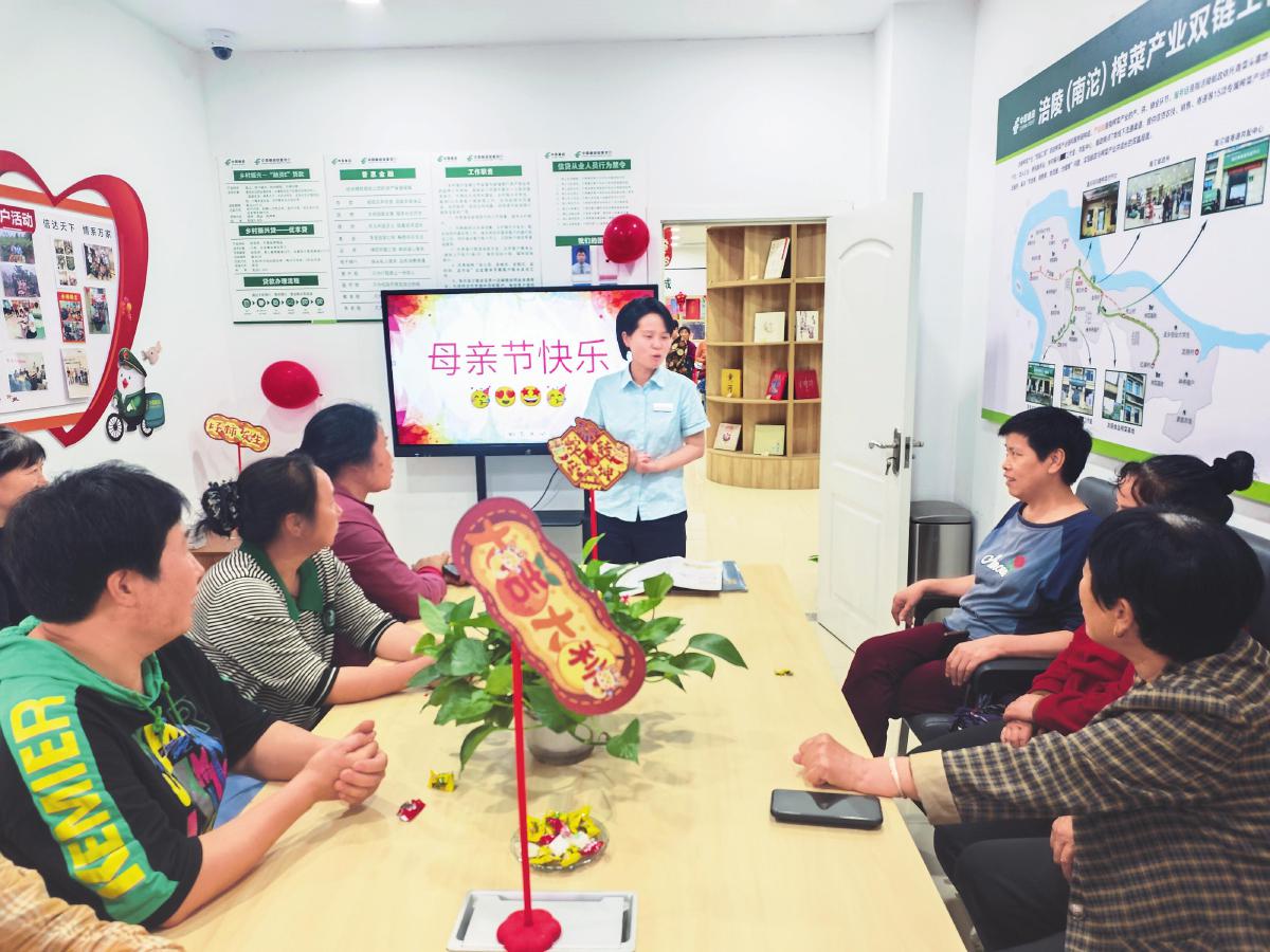 除了加强站点运营管理,南沱邮政所还设有政务服务专窗,叠加代办税务、社保、交管等政务服务,并开辟出一间乡村振兴工作室。冉冰每周会与邮储银行涪陵区支行客户经理苏桃沟通交流,或协同处理“融资E”贷款、对公账户业务,或一起走访产业客户、商户、小企业主,或一起进村开院坝会,共同推进“村社户企店”客群开发。