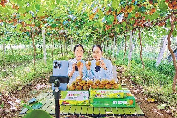 南阳邮政直播团队开展西峡猕猴桃助农直播。