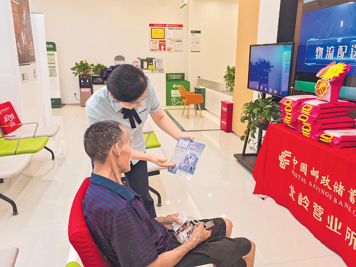 针对老年群体需求,邮政工作人员宣传定制化普惠保险业务。
